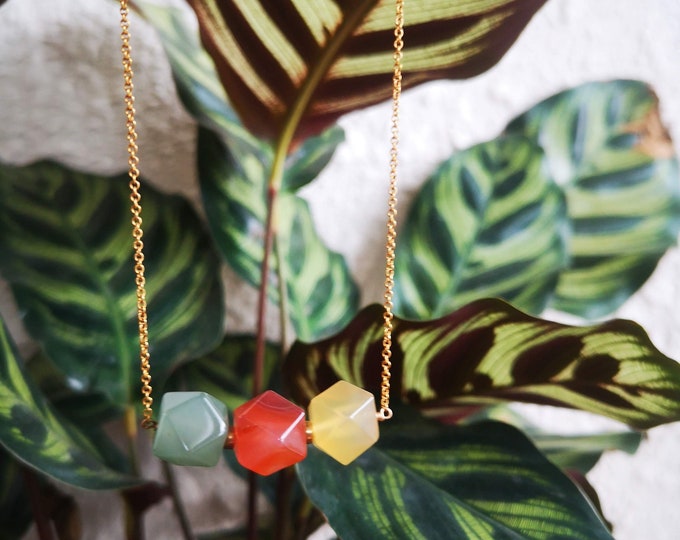 Traffic light color stones Gold Necklace